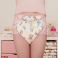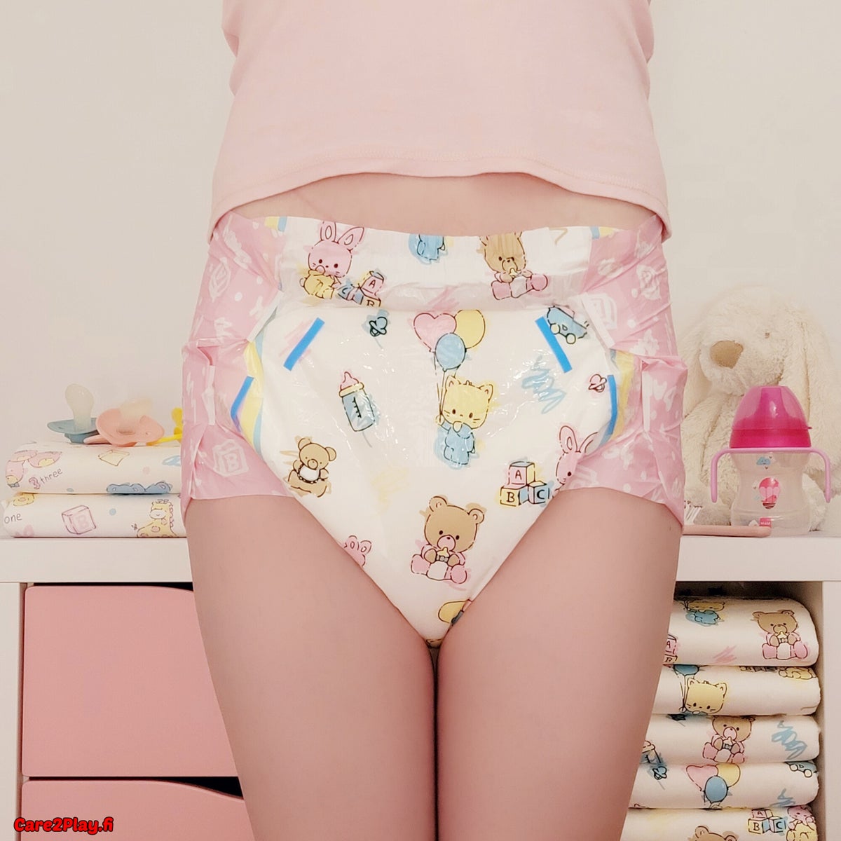 Miksi kasvaa aikuiseksi? Nauti tämän pastellisävyisen vaipan vintage-tunnelmasta kanien, nallejen ja kissanpentujen kanssa.