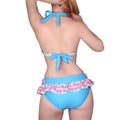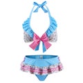 LittleforBig Baby Cuties uimapuku koostuu Halter-kaula-aukkoisesta bikiniyläosasta ja Peplum-tyylisistä bikinialushousuista. Yläosaa koristavat rypytetyt kaulaolkaimet ja iso rusetti.