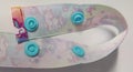 Suomessa käsityönä valmistettu tuttinauha, johon tutti voidaan kiinnittää neppareilla suljettavaan lenkkiin. Kahden nepparin kiinnitys tuo hieman säätövaraa nauhan pituuteen.