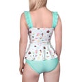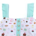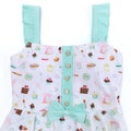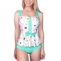 LittleforBig Vintage Sweets uimapuku on vintage-tyylinen uimapuku söpöllä herkkukuosilla. Uimapuvun yksityiskohtia ovat mm. etupuolen viisi keinohelmiäisnappia, kiinteä peplum-helma ja vihreä rusettisolmu. Uima-asussa on kiinteänä osana irrotettavilla kupeilla varustetut pehmeät liivit, jotka antavat tukea ja käyttömukavuutta.