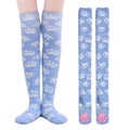 Tassukuvioiset polvisukat pörröisestä koralli-fleecestä pitävät jalat lämpiminä. Pohjissa on pehmeät pinkit 3D silikonitassut, jotka ehkäisevät liukastumista ja ovat valtavat söpöt.
