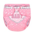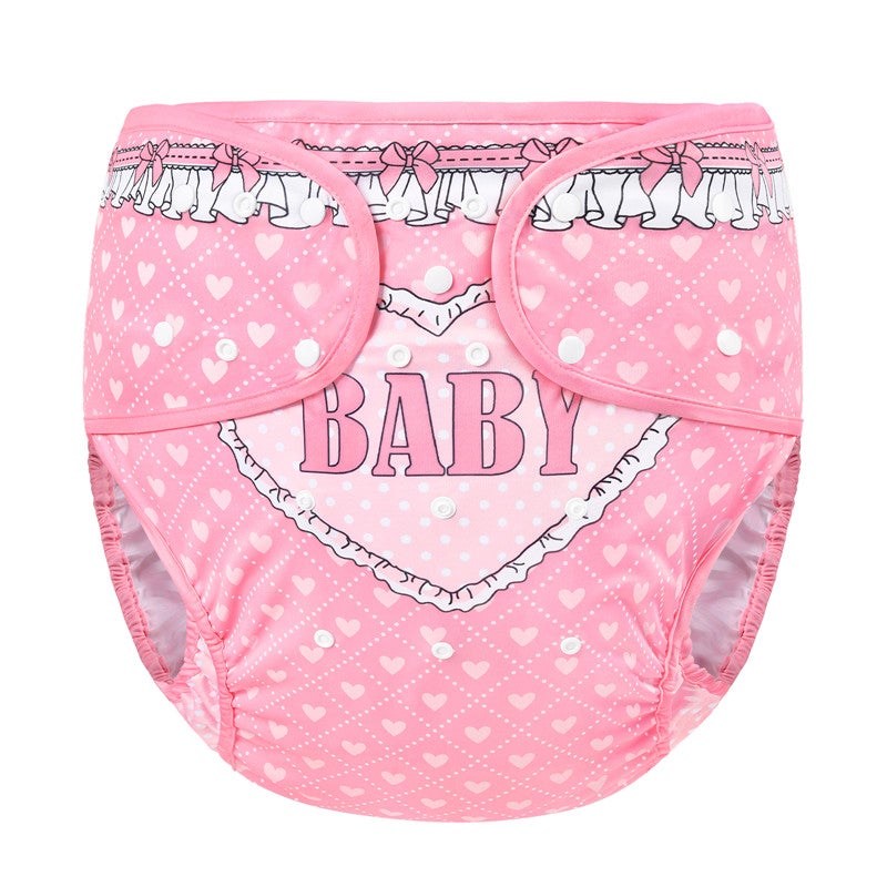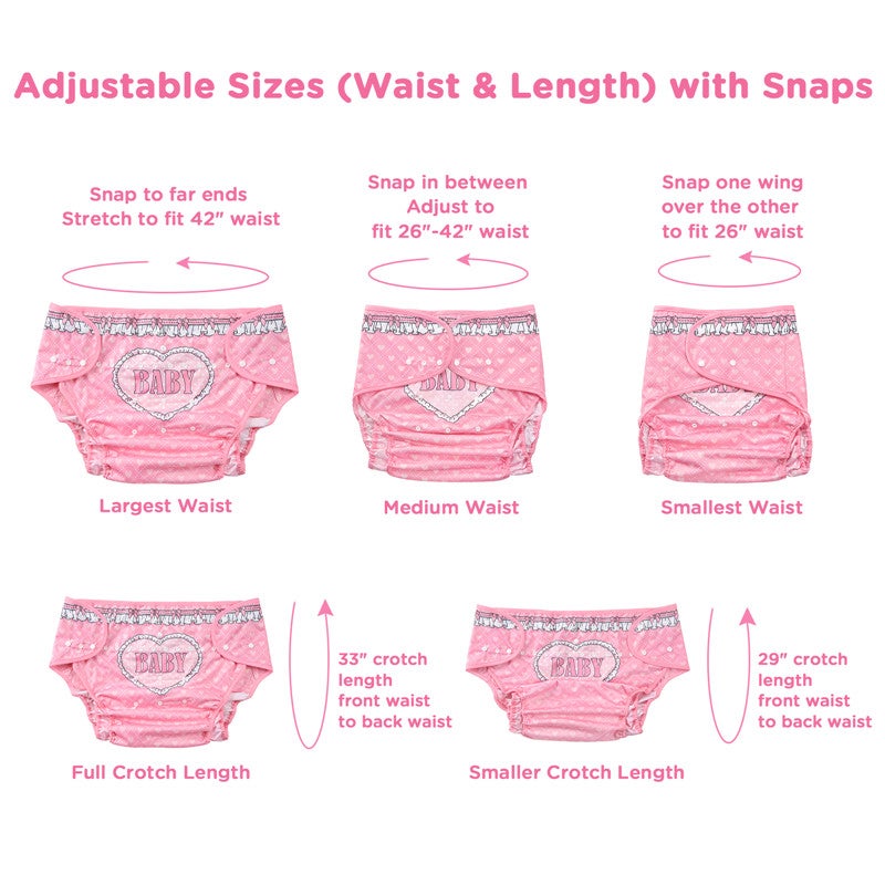 Sukella suloiseen tunnelmaan Blushing Baby -aikuisten vaippakuoren kanssa! Tämä vaaleanpunainen kangasvaippakuori hurmaa isolla ja rohkealla "BABY"-kuviolla etu- ja takapaneelissa, täydennettynä herkällä röyhelöreunuksella. Sen hempeä, pastellinen ilme sopii täydellisesti roolileikkiin, kuten ageplay, ABDL ja DDLG, tuoden ripauksen söpöyttä ja naisellista viehätystä päivittäiseen käyttöön.