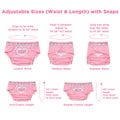 Yksi koko sopii monille vartalotyypeille, sillä vaippakuori on helposti säädettävissä neppareilla. Vyötärön säätövara on 66–107 cm ja korkeuden säätövara 74–84 cm, joten voit luoda tiiviin ja turvallisen istuvuuden, joka estää vuodot. Joustavat lahkeensuut lisäävät mukavuutta ja varmistavat, että kuori istuu täydellisesti.